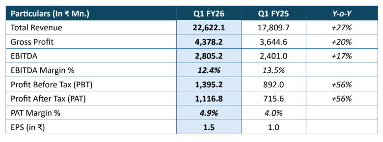 - Manufacturing Revenue up 29% to ₹ 18,323 Mn. as compared to ₹ 14,247 Mn. in Q1 FY25