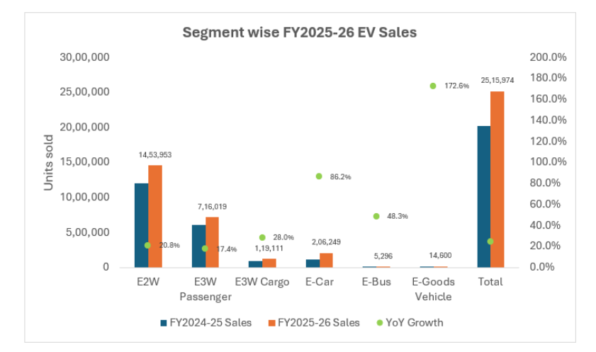 Electric vehicle retail momentum in India remained strong in February 2026, with year-on-year growth recorded across all major segments. According to data released by the Federation of Automobile Dealers Associations (FADA), electric two-wheelers, passenger vehicles, three-wheelers and commercial vehicles all registered healthy growth, although overall EV penetration remained largely stable due to the faster expansion […]