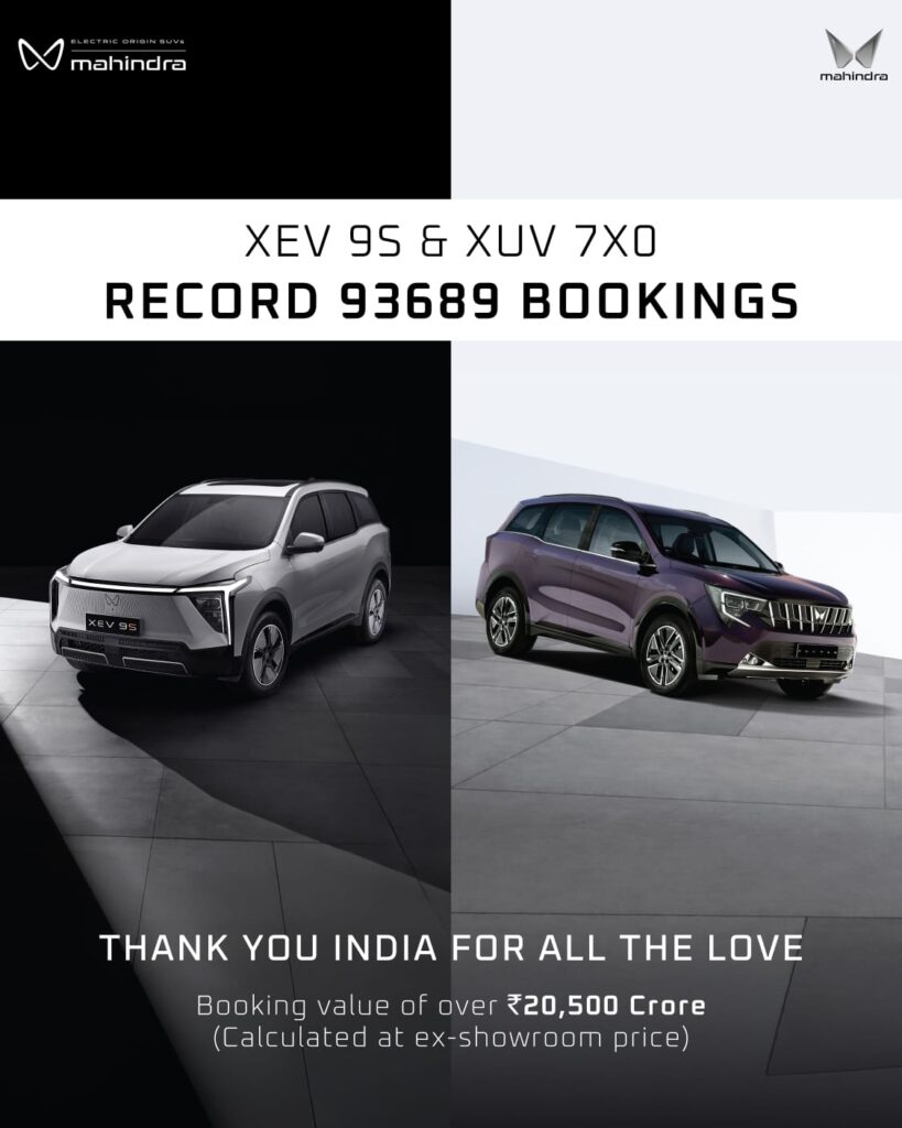 The company noted that the strong booking momentum reflects growing customer confidence in Mahindra’s SUV offerings and its ability to deliver products that combine performance, technology and design across both internal combustion and electric vehicle platforms.