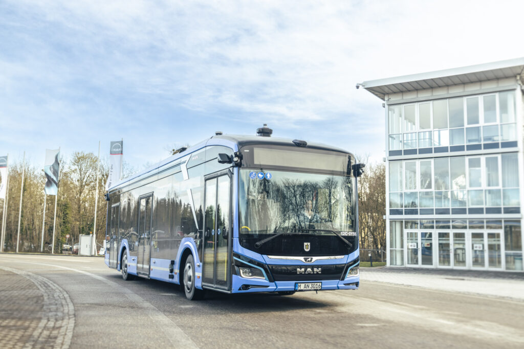 Over the past few months, MAN has equipped a Lion’s City 12 E with an Automated Driving System (ADS) and integrated it into the vehicle’s electronic architecture. The bus is now technically capable of automated driving, supported by five LiDAR sensors, six radar units, eight cameras, and a Global Navigation Satellite System (GNSS). Initial test drives are being conducted on MAN’s premises, focusing on specific manoeuvres such as approaching bus stops. This phase aims to fine-tune the system, collect operational data, and optimise automated driving functions.