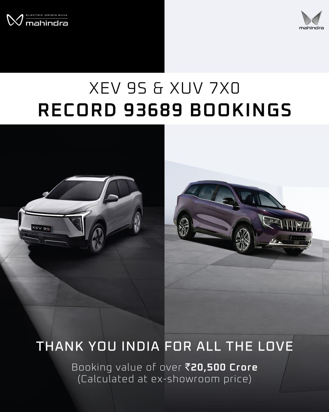 Mahindra Opens Bookings for XEV 9S and XUV 7XO, Clocks Nearly 94,000 Orders Worth ₹20,500 Crore