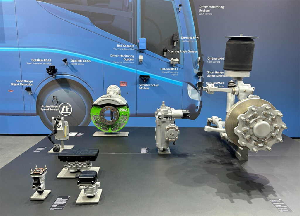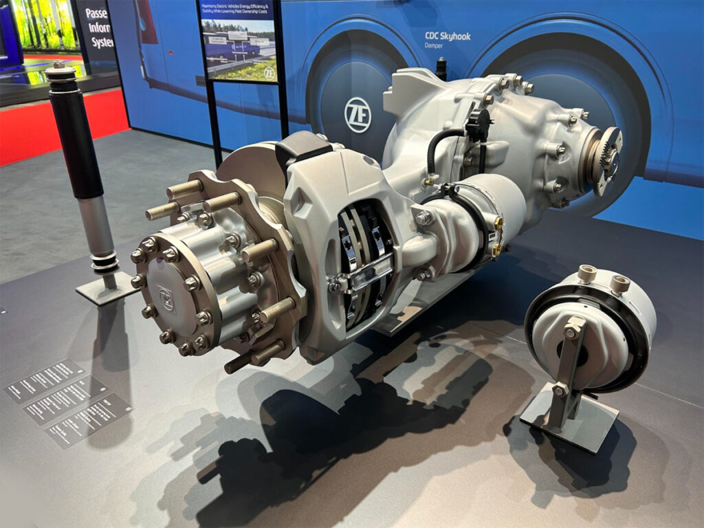 Passenger comfort was another focal point, with ZF’s CDC Skyhook damper bringing predictive damping for buses to a higher level, adapted from luxury cars, it electronically adjusts to road conditions, improving ride comfort, accessibility and stability.